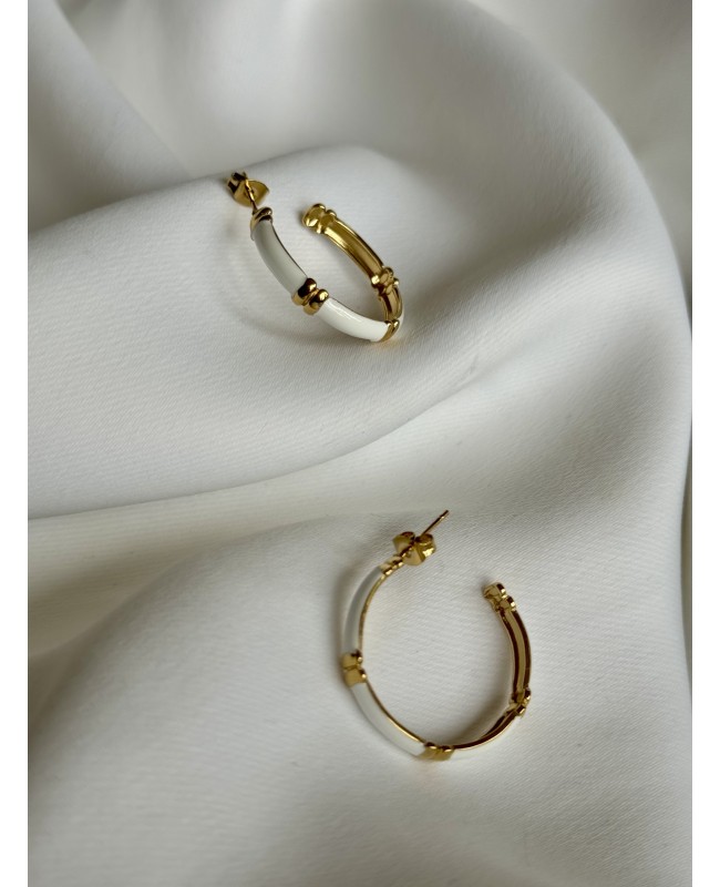 Stylish and timeless – these delicate hoop earrings are the perfect choice for lovers of classic jewelry with a modern twist. The combination of gold plating and white enamel gives them a fresh and elegant look, while subtle gold accents add a unique character.