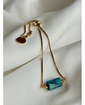 Indulge yourself in a touch of ocean magic. This unique bracelet captivates with its intensely turquoise stone, reminiscent of the depths of the sea. The gold chain accentuates the stone's elegance, creating a piece of jewelry that is both elegant and unique.
