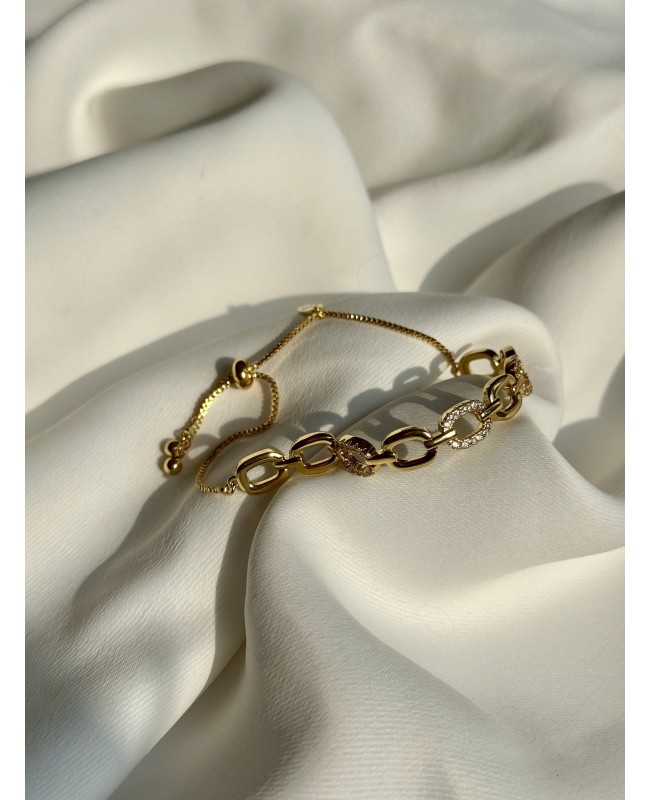 Classic elegance with a modern twist. This bracelet with large gold links is a timeless accessory that will perfectly complement both everyday looks and evening outfits. Some links are embellished with sparkling cubic zirconia, adding a luxurious touch.