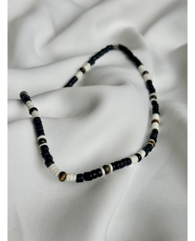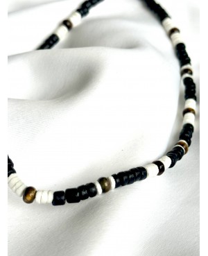 Naszyjnik z czarno-białych koralików z tygrysim okiem