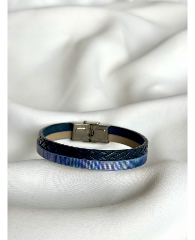 This stylish bracelet in elegant navy blue tones combines classic style with modern design. It consists of two strands – one is braided with faux leather, the other has a subtle, metallic sheen, giving the piece a unique character.