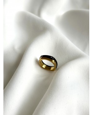 A unique blend of classic and modern. This stylish ring combines a gold band with a black finish, creating a striking contrast. Both parts are movable. Subtle, sparkling embellishments add an elegant touch, giving it a unique character.