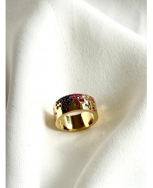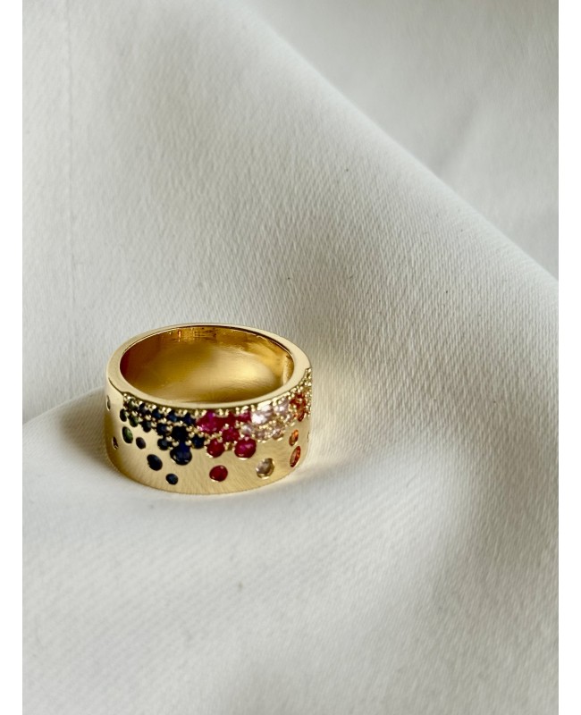 Wide gold ring with colorful cubic zirconias – gradient effect