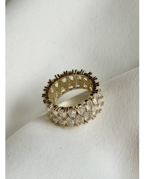 A wide gold ring with cubic zirconia stones is a piece of jewelry that will add a royal touch to your collection and make you shine at all times.