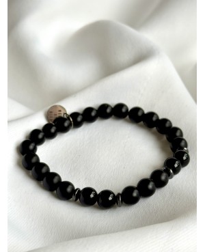 An elegant and minimalist bracelet made of natural onyx with subtle hematite accents. The combination of matte and shiny stones creates a balanced, modern composition that will add character to any outfit.