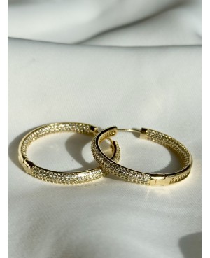 Timeless hoop earrings that combine classic elegance with the sparkle of modern style. Crafted in gold, they are adorned with sparkling, tiny cubic zirconias scattered throughout, beautifully reflecting light and drawing attention.