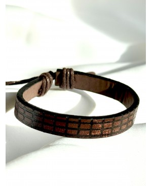 A minimalist yet characterful men's bracelet made of brown faux leather. Its main feature is an interesting geometric, slightly distressed grid pattern, which gives the bracelet a unique, rugged style.