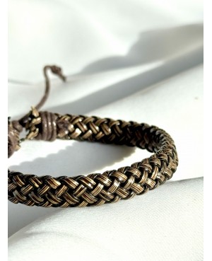 This unique bracelet is crafted from beautifully braided, durable cord in shades of black, beige, and brown. Its dense, strong weave gives it a solid, modern feel, and its natural colors make it a perfect complement to almost any outfit.