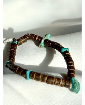 The "Turquoise Desert" bracelet is a unique blend of natural aesthetics with a subtle pop of color. Crafted from dark brown beads with an irregular, slightly rough structure, it lends it a character inspired by ethnic and boho styles.