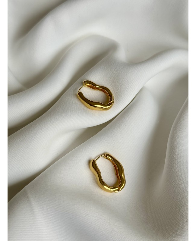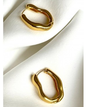 Nadaj swojej stylizacji subtelnej elegancji z naszymi złotymi kolczykami o unikalnym, organicznym kształcie. Ich nieregularna forma inspirowana naturą sprawia, że prezentują się nowocześnie i nietuzinkowo, a jednocześnie pozostają niezwykle uniwersalne.