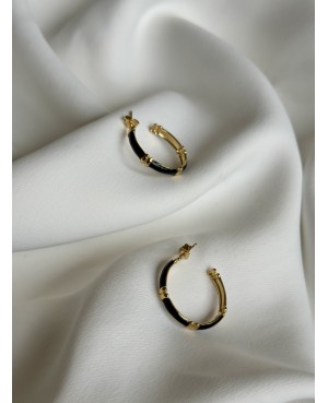 Stylowe i ponadczasowe – te kolczyki w formie delikatnych kółek to idealny wybór dla miłośniczek klasycznej biżuterii z nutą nowoczesności. Połączenie złotej powłoki z czarną emalią nadaje im świeżości i elegancji, a subtelne zdobienia w formie złotych akcentów dodają im wyjątkowego charakteru.