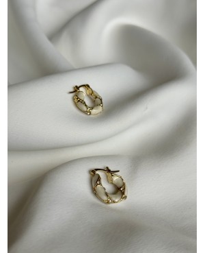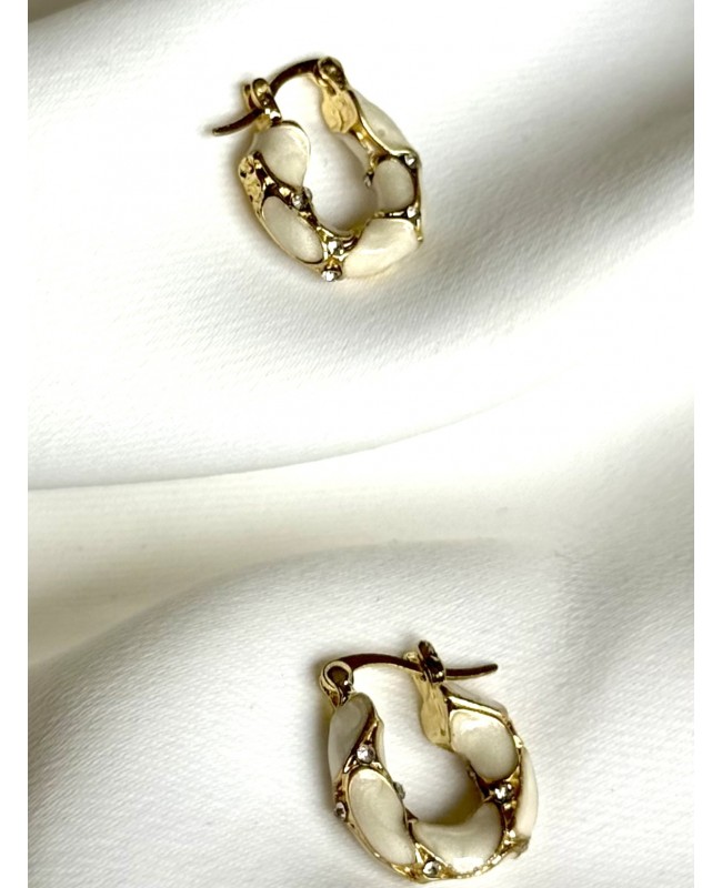 Eleganckie i niezwykle kobiece – te kolczyki w formie delikatnych kółek zachwycają połączeniem białej emalii i błyszczących cyrkonii. Ich subtelny, mozaikowy wzór nadaje im wyjątkowego charakteru, a złote wykończenie dodaje całości luksusowego wyglądu. Idealne zarówno na co dzień, jak i na specjalne okazje.