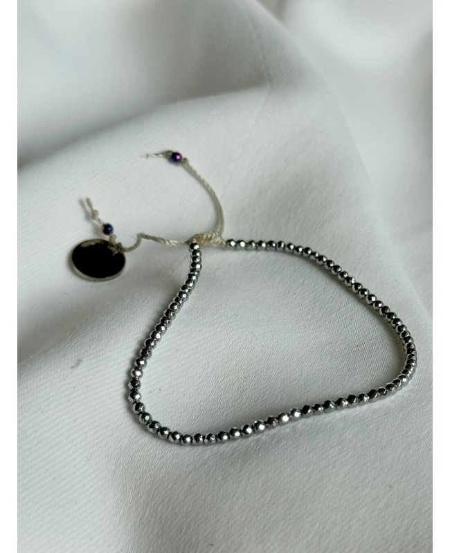 Minimalistyczna i pełna blasku bransoletka, stworzona z drobnych, fasetowanych koralików hematytowych o naturalnym, metalicznym połysku. Jej ponadczasowy design sprawia, że pasuje zarówno do codziennych stylizacji, jak i bardziej eleganckich zestawów.