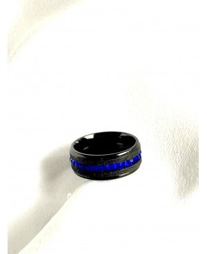 Czarny pierścionek ze stali z niebieską wstawką kryształową – unisex