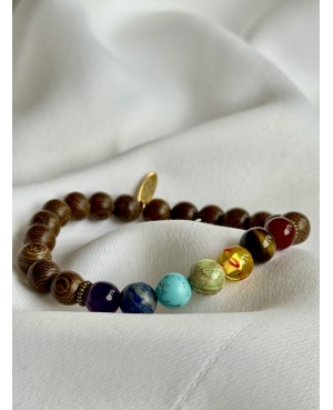 Bransoletka z drewna i naturalnych kamieni – 7 czakr