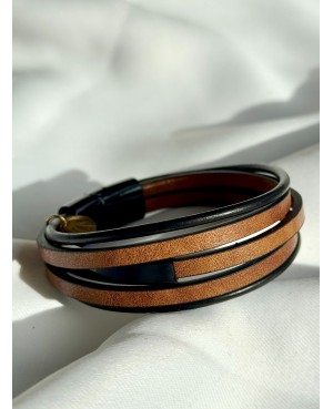 Nowoczesna i elegancka bransoletka męska, idealna dla fanów prostych, ale efektownych dodatków. Wykonana z połączenia czarnych i brązowych pasków skóry ekologicznej, tworzy stylową, wielowarstwową kompozycję, która świetnie sprawdzi się w codziennych i biznesowo-casualowych stylizacjach.