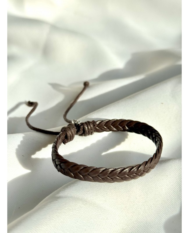 Klasyczna i ponadczasowa bransoletka wykonana z ciemnobrązowego, plecionego rzemyka z ekologicznej skóry. Jej minimalistyczny design sprawia, że doskonale uzupełnia codzienne stylizacje, nie dominując ich, lecz dodając subtelnego, naturalnego charakteru.