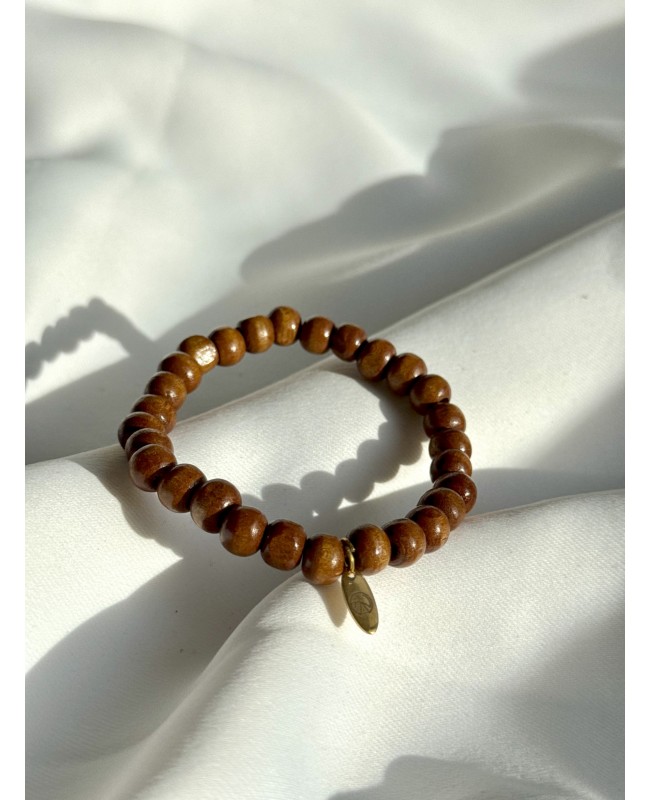 Bransoletka wykonana z pięknie wypolerowanych, naturalnych koralików drewnianych w ciepłym, karmelowo-brązowym odcieniu. Model utrzymany jest w minimalistycznej stylistyce, dzięki czemu doskonale pasuje zarówno do codziennych, jak i bardziej eleganckich stylizacji.